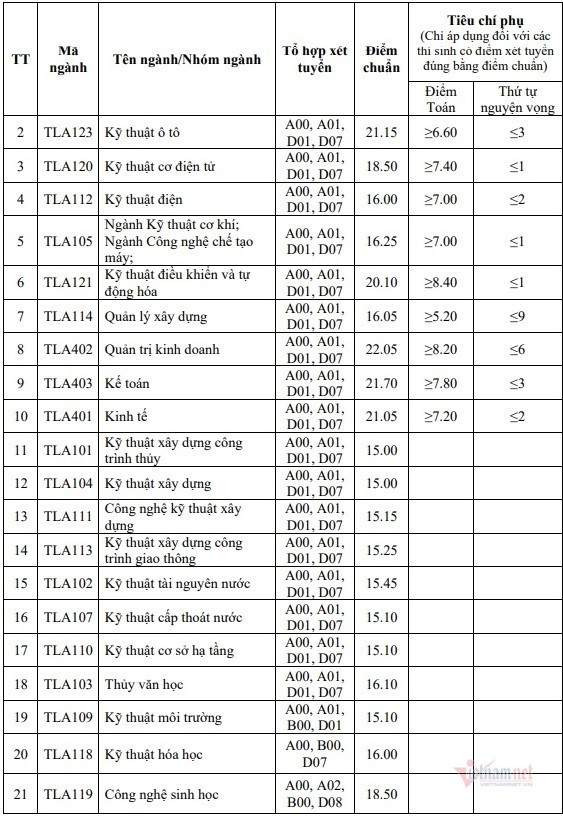 Trường ĐH Thủy lợi vừa công bố điểm chuẩn trúng tuyển hệ đại học năm 2020 vào các ngành theo phương thức sử dụng kết quả thi tốt nghiệp THPT.