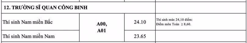 Năm nay, trường Sĩ quan Công binh – Đại học Ngô Quyền tuyển sinh 184 chỉ tiêu vào hệ quân sự. Mức điểm sàn được công bố trước đó là 18 điểm. Nhà trường sẽ công bố điểm chuẩn chậm nhất vào ngày 5/10.