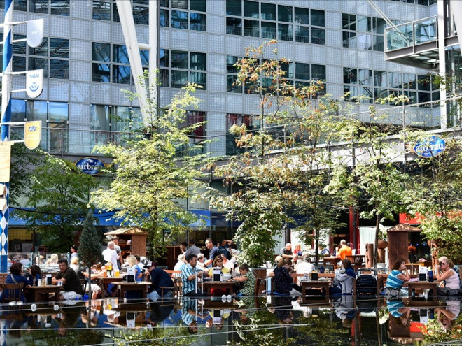 Sân bay Munich là nơi có nhiều nhà hàng phong cách Bavaria với khuôn viên luôn rộng rãi thoáng mát đi kèm sân vườn ngoài trời, phục vụ nhạc sống và bia địa phương. Du khách có thể thưởng thức bia tươi cùng nhiều món ngon hấp dẫn.