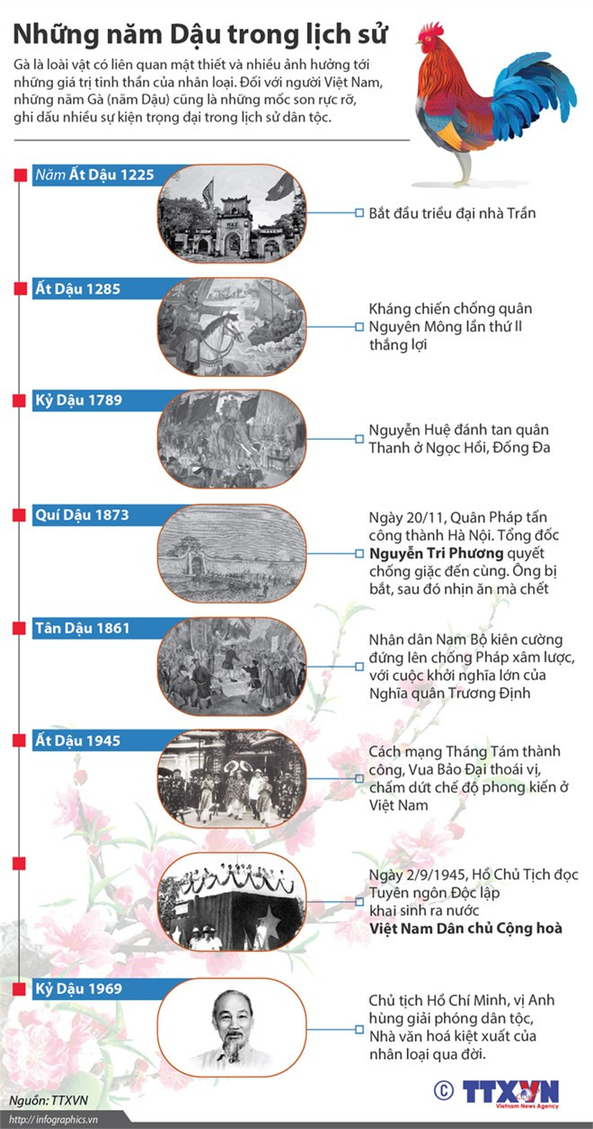 Gà là loài vật có liên quan mật thiết và nhiều ảnh hưởng tới những giá trị tinh thần của nhân loại. Đối với người Việt Nam, những năm Gà (năm Dậu) cũng là những mốc son rực rỡ, ghi dấu nhiều sự kiện trọng đại trong lịch sử dân tộc.