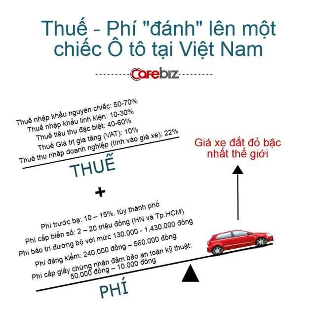 Có hàng tá các loại thuế, phí khác nhau đang được đánh lên một chiếc ô tô, góp phần đẩy giá xe tại Việt Nam trở nên đắt đỏ bậc nhất thế giới.