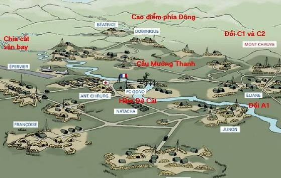 Tất cả lực lượng này được tổ chức thành 3 phân khu, 8 trung tâm đề kháng, bao gồm 49 cứ điểm phòng thủ liên hoàn, có cầu hàng không với 2 sân bay Mường Thanh và Hồng Cúm, chưa kể tới lực lượng không quân của Pháp và Mỹ luôn sẵn sàng hỗ trợ khi cần thiết.