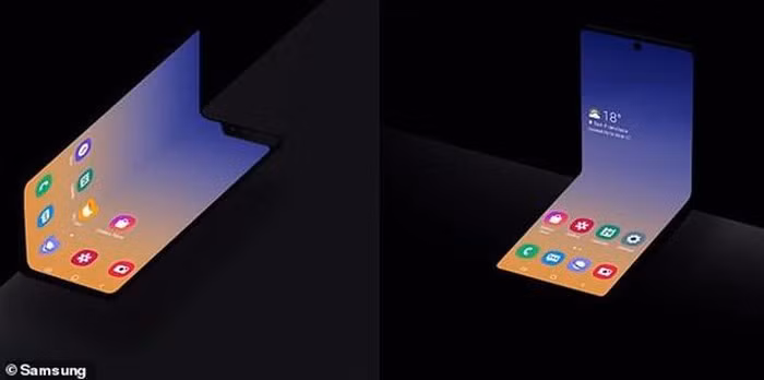 Bên trái là hình ảnh về cách Galaxy Fold hiện tại của Samsung gập trong khi hình ảnh bên phải hiển thị một thiết bị không tên có thể gập theo chiều dọc. (Nguồn: Samsung)