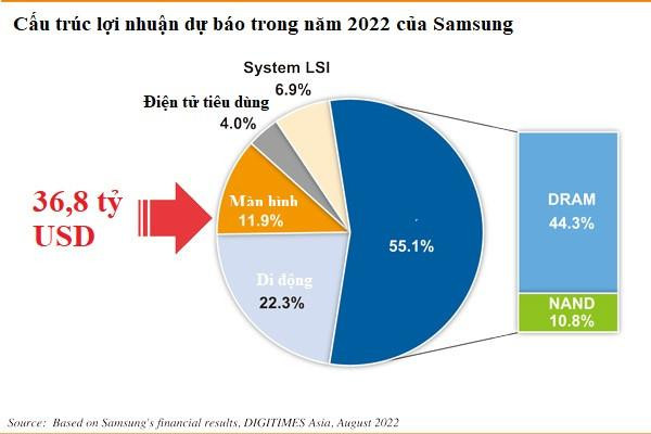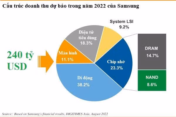 Để hiểu Samsung Electronics – điều quan trọng là phải nhìn vào cấu trúc kinh doanh của họ. Doanh thu của Samsung dự báo đạt 240 tỷ USD vào năm 2022 – gần 40%tới từ mảng di động và 30% tới từ chất bán dẫn, mà chủ yếu trong đó là chip nhớ.