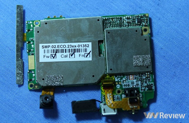 Tấm chống nhiễu điện từ của Vivas Lotus S2 đầy dấu tay. Như vậy quy trình đảm bảo vệ sinh khi lắp ráp đã không được thực hiện đúng (ảnh: Vnreview)