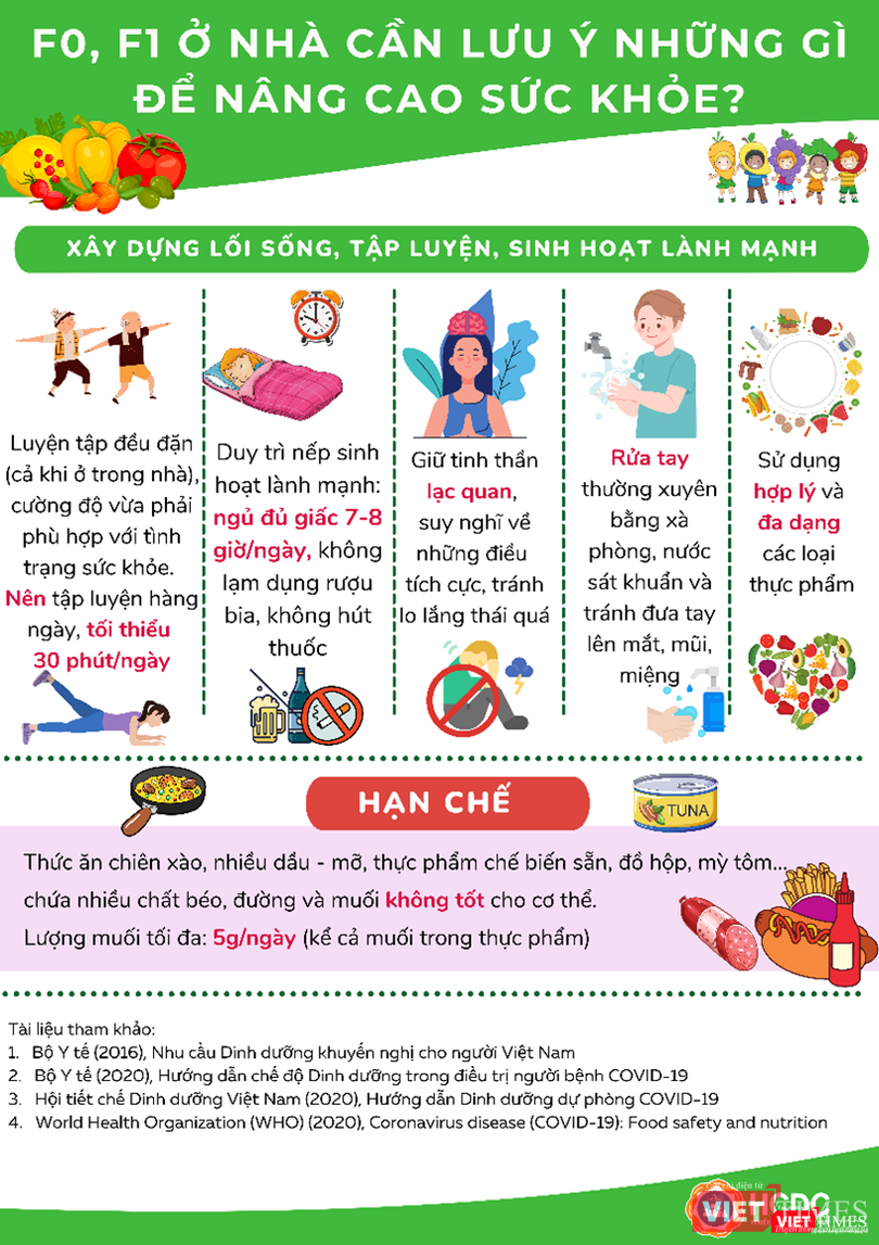 - Hạn chế thức ăn chiên xào, nhiều dầu - mỡ, thực phẩm chế biến sẵn, đồ hộp, mỳ tôm, ... chứa nhiều chất béo, đường và muối không tốt cho cơ thể. Lượng muối tối đa: 5g/ngày (kể cả muối trong thực phẩm).