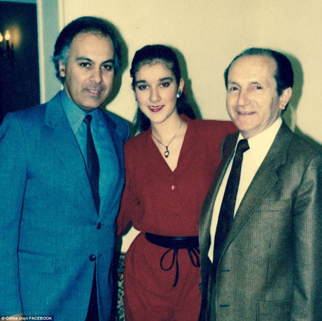 Trong những năm tháng đầu khi tình yêu chớm nở, ảnh chụp năm 1985. Celine Dion đứng giữa, Rene Angelil đứng ngoài cùng bên trái. Người còn lại là nhạc sĩ người Pháp Eddy Marnay - một người bạn thân thiết của cặp đôi. Sau này, Celine và Angelil đã đặt tên cho một cậu con trai của họ là Eddy để tưởng nhớ người bạn yêu mến.