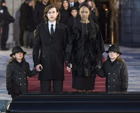 Celine Dion đứng trước linh cữu chồng cùng với ba người con trai.