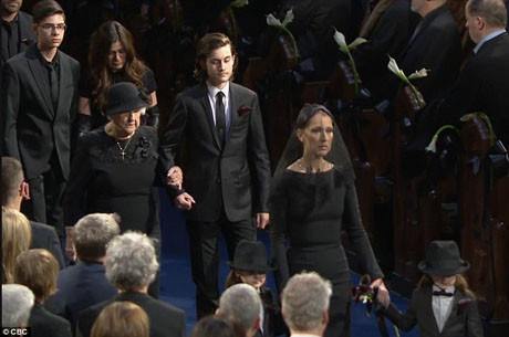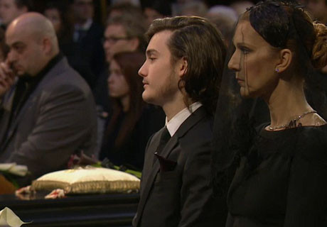 Trong suốt lễ tang, cậu thiếu niên thường đi bên cạnh bà ngoại 88 tuổi để dìu bà, trong khi Celine Dion thường dắt tay và quan tâm tới hai cậu con trai sinh đôi 5 tuổi - Nelson và Eddy.