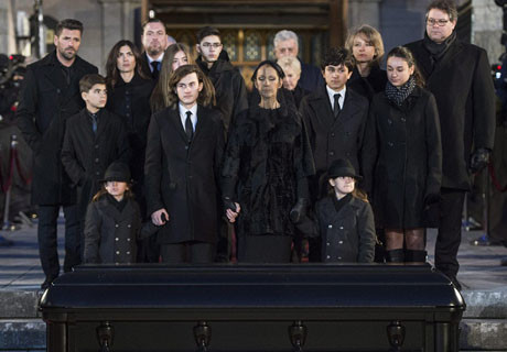 Đứng bên quan tài lúc này vẫn còn để mở, Celine Dion đã có những lúc bật khóc. Khi ra về sau lễ tưởng niệm, Celine Dion đã phải vịn tay con trai để bước đi. Vào thứ 3 tuần này, gia đình Celine Dion lại trải qua lễ tang của một người anh trai.