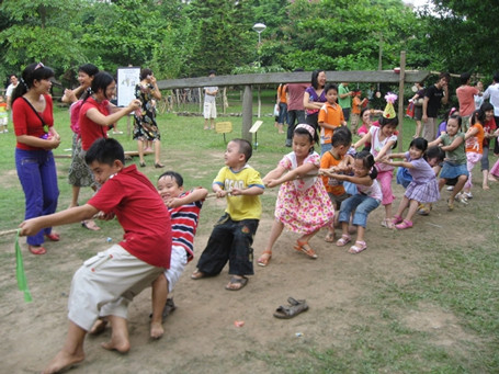 Các em thiếu nhi chơi trò chơi dân gian ở Bảo tàng dân tộc họ (Ảnh minh họa: Internet)