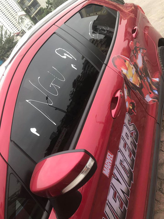 | Hình ảnh chiếc xe ô tô bị viết chữ tục tĩu. |