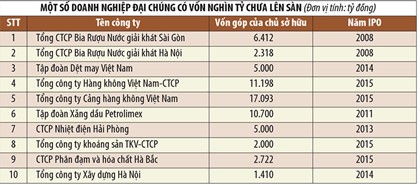 Trong số hàng nghìn doanh nghiệp đã đăng ký là công ty đại chúng với UBCK, nhưng đến nay chưa niêm yết hoặc đăng ký giao dịch trên sàn UPCoM, có hàng trăm công ty hình thành từ cổ phần hóa doanh nghiệp nhà nước. Có những doanh nghiệp đã cổ phần hóa cách đây nhiều năm như: Tổng CTCP Bia Rượu Nước giải khát Sài Gòn (Sabeco), Tổng CTCP Bia Rượu Nước giải khát Hà Nội (Habeco), Tập đoàn Xăng dầu Việt Nam (Petrolimex)… nhưng chưa lên sàn và cũng chưa thể xác định thời điểm, bất chấp sự thúc giục của cổ đông.