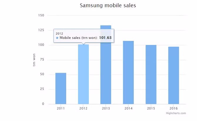 Việc bán hàng điện thoại di động của Samsung đã giảm xuống mức thấp nhất trong 5 năm trở lại đây do ảnh hưởng từ sự suy thoái của thị trường toàn cầu, cạnh tranh khốc liệt từ các tên tuổi đến từ Trung Quốc và sự thất bại của chiếc smartphone mà hãng này đặt nhiều kì vọng là Galaxy Note 7.