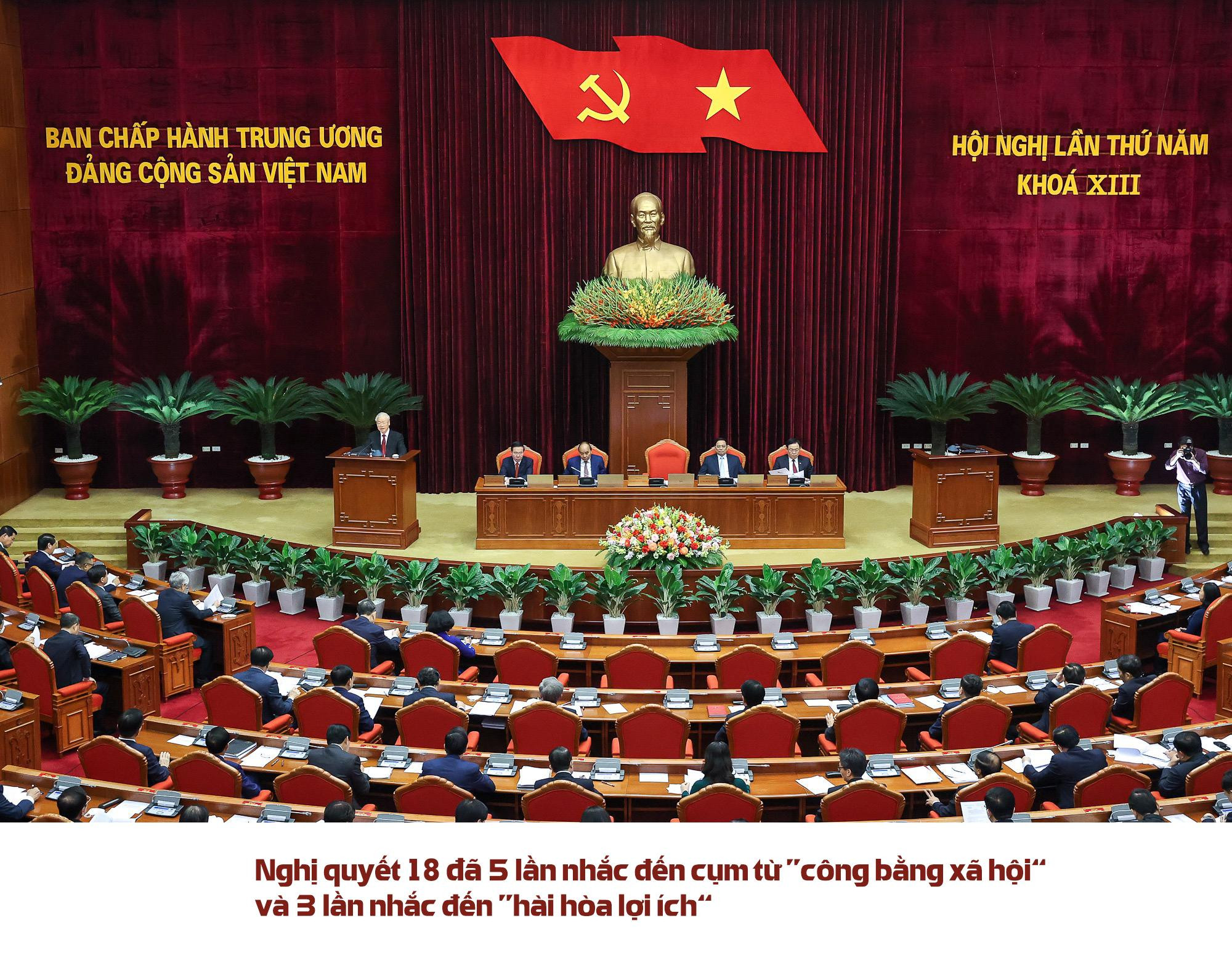 Do đó, đề cao nguyên tắc hài hòa lợi ích và công bằng xã hội, Nghị quyết 18 đã nhận thức rằng để giảm các điểm nóng tranh chấp đất đai ở nước ta hiện nay, hướng đến sự phát triển bền vững, thì thách thức hàng đầu là cần phải bảo đảm sự công bằng về thụ hưởng lợi ích giữa các bên liên quan đến đất. Cụ thể hơn thì lợi ích của các nhóm yếu thế, tức là những người bị thu hồi đất, cần được quan tâm đúng mức hơn.