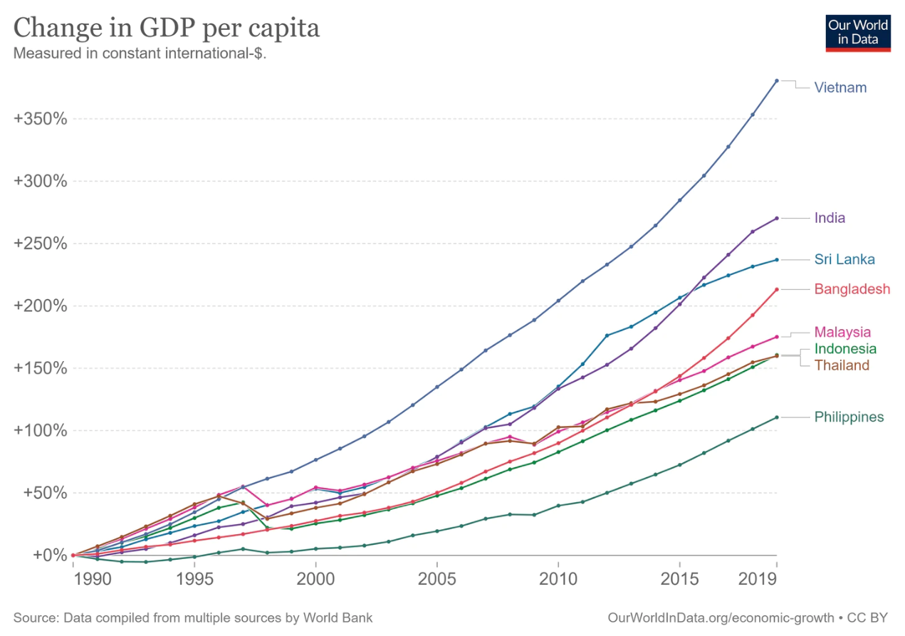 20 năm qua là khoảng thời gian đánh dấu sự tăng tốc của các quốc gia nghèo hơn – không chỉ Trung Quốc, mà nhiều quốc gia khác – để bắt kịp các nước giàu hơn.
