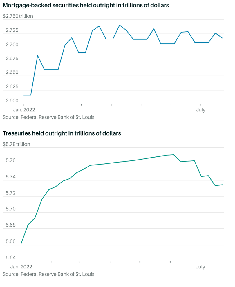 Các chiến lược gia tại BofA Securities nhấn mạnh rằng, kể từ tháng 3, Fed không mua thêm chứng khoán, nhưng lại tái đầu tư các khoản trả lãi. Bắt đầu từ tháng 8, danh mục đầu tư MBS sẽ bắt đầu giảm, nhưng họ nói rằng mức giảm này phải đến tháng 11 mới trở nên rõ ràng hơn.