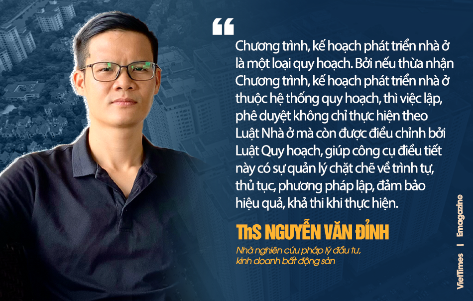 Trong dự án Luật Nhà ở (sửa đổi), cần phải nhìn nhận rằng Chương trình, kế hoạch phát triển nhà ở là một loại quy hoạch. Bởi nếu thừa nhận Chương trình, kế hoạch phát triển nhà ở thuộc hệ thống quy hoạch, thì việc lập, phê duyệt không chỉ thực hiện theo Luật Nhà ở mà còn được điều chỉnh bởi Luật Quy hoạch, giúp công cụ điều tiết này có sự quản lý chặt chẽ về trình tự, thủ tục, phương pháp lập, đảm bảo hiệu quả, khả thi khi thực hiện.