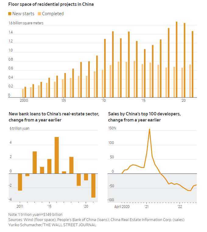 Đà giảm trong lĩnh vực bất động sản hiện tại một phần là do tình trạng xây dựng và vay mượn quá độ của các nhà phát triển địa ốc trong suốt nhiều năm qua ở Trung Quốc.
