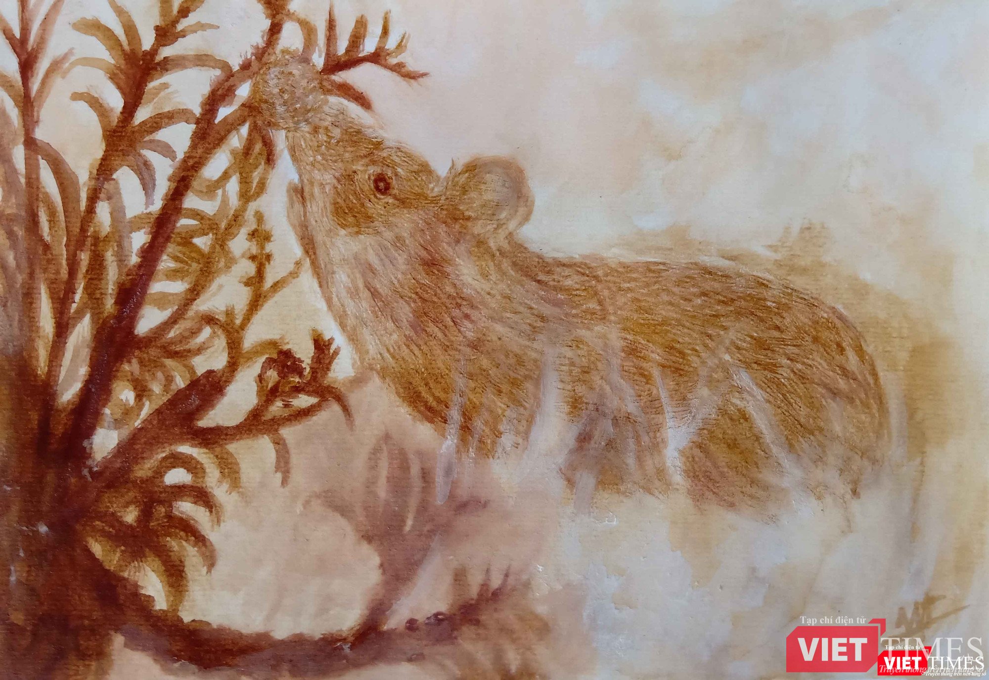 Do các chất liệu không qua khâu xử lý nên để có được màu vẽ ưng ý nhất, Kim Út phải thử rất nhiều lần dưới nhiều lớp vẽ. Kim Út chia sẻ, mỗi bức tranh vẽ nhanh nhất khoảng 6 tiếng, chậm nhất khoảng 2-3 ngày mới xong một tác phẩm.