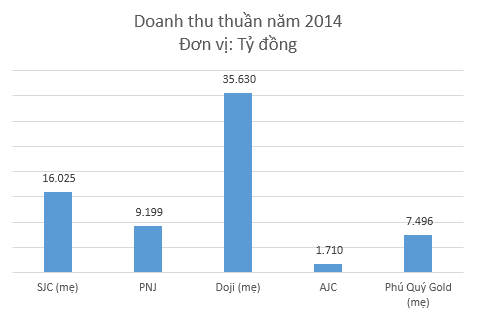 Năm 2014, doanh thu PNJ dù đạt khá thấp so với các đối thủ như SJC hay DOJI nhưng lại là doanh nghiệp có lợi nhuận cao nhất toàn ngành với 256 tỷ đồng.