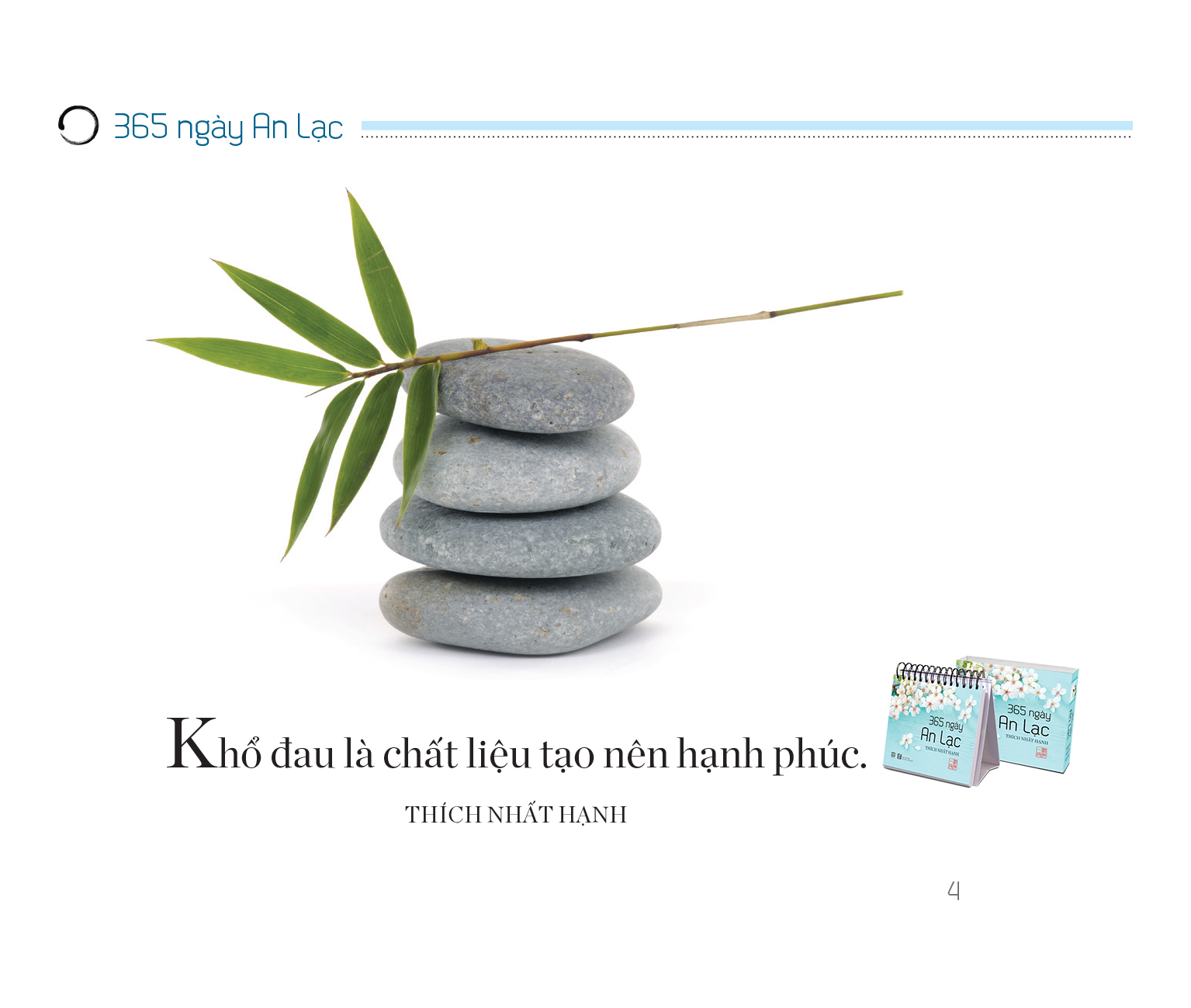 Bộ sách để bàn 365 ngày với hai chủ đề: An lạc và Yêu thương của thiền sư Thích Nhất Hạnh gửi gắm mong muốn rằng từng trang sách sẽ như một dòng suối lành rửa trôi những khổ đau, vướng mắc, để lại sự bình an trong tâm hồn mỗi người.