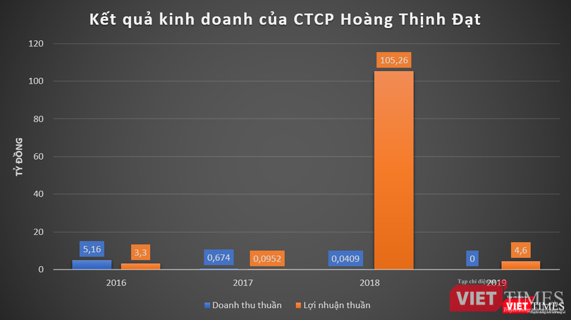 Như năm 2018, doanh thu thuần của Hoàng Thịnh Đạt chỉ là 40,9 triệu đồng, trong khi mức lãi thuần lại lên đến 105,26 tỉ đồng./.
