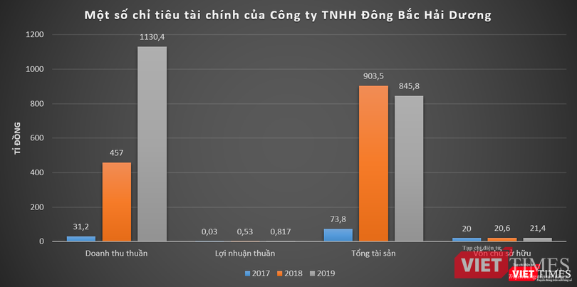 Sau hơn 2 năm thành lập, doanh thu của Đông Bắc Hải Dương đã tăng gấp hàng chục lần, từ mức 31,2 tỉ đồng năm 2017 lên mức 1.130,4 tỉ đồng năm 2019.