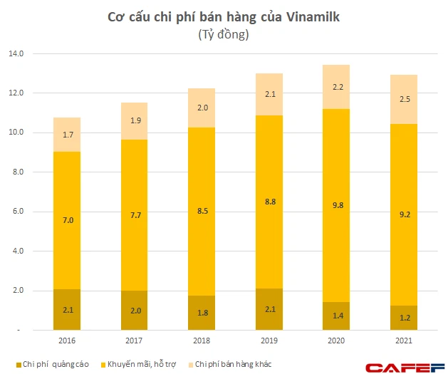Giai đoạn 2016-2019, Vinamilk chi khoảng 2.000 tỷ đồng/năm cho quảng cáo nhưng khoản chi này đã đột ngột giảm mạnh trong 2 năm covid.