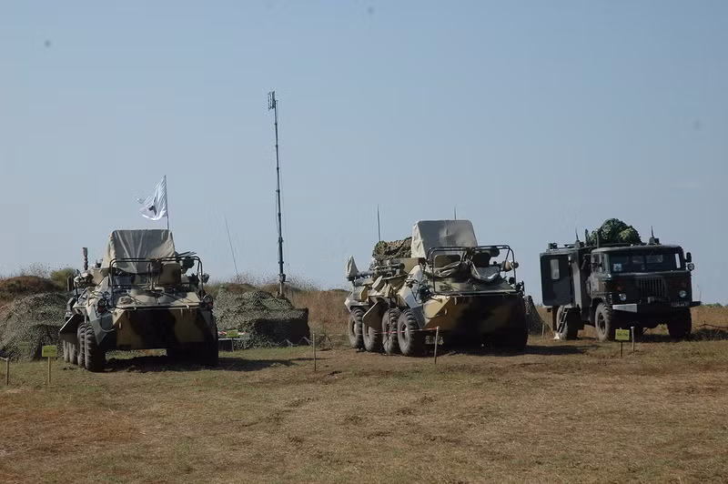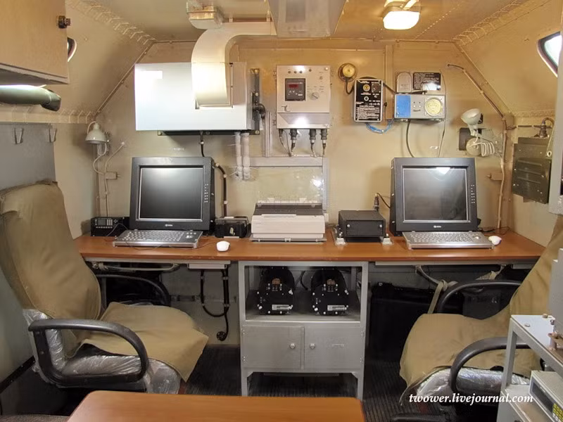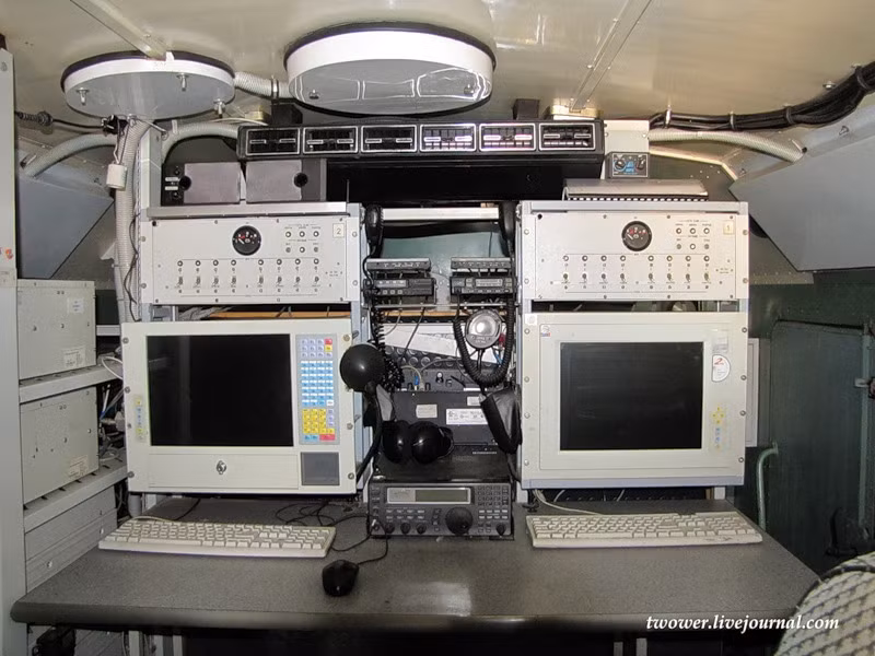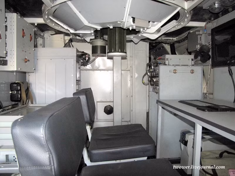 Trong lữ đoàn có biên chế một đại đội tác chiến điện tử, dưới đây là phía bên trong của xe chỉ huy, điều hành tác chiến điện tử RP-330KPK