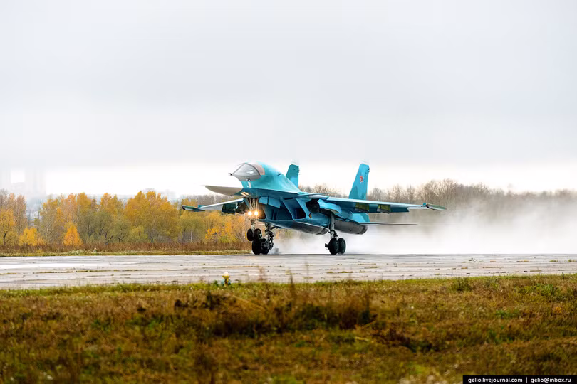 Trước khi bàn giao máy bay chiến đâu, Su-34 được đưa vào thử nghiệm cấp nhà máy trong vòng hai tháng. Sân bay thử nghiệm được bố trí cách khu dân cư từ 120 - 170 km.