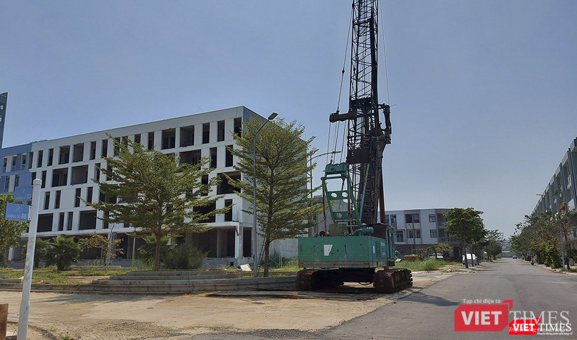| Dự án bị đình chỉ thi công để phục vụ điều tra với ngổn ngang thiết bị xe máy |