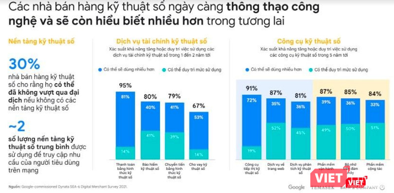 Về các doanh nghiệp vừa và nhỏ của Đông Nam Á, 1/3 số người Việt tham gia ứng dụng kỹ thuật số để kinh doanh tin rằng họ sẽ không thể sống sót sau đại dịch nếu không có các nền tảng kỹ thuật số.