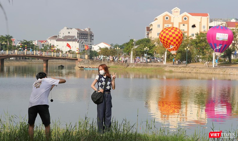 Hứng thú với sự kiện lần đầu tiên được tổ chức tại Hội An, rất đông du khách và người dân tập trung dọc hai bên bờ sông Hoài để chiêm ngưỡng cũng như checkin với những khinh khí cầu đủ màu sắc này.