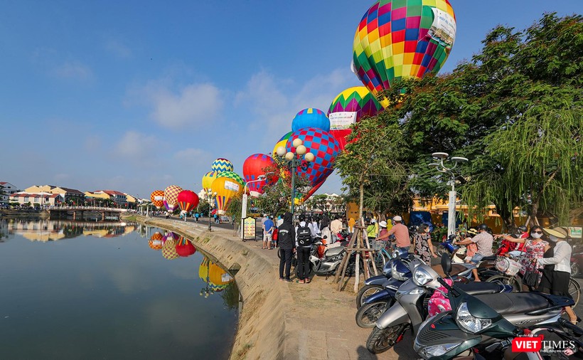 Nằm trong khuôn khổ chào mừng khai mạc Năm Du lịch quốc gia-Quảng Nam 2022, sáng nay, ngày 25/3, tại Quảng trường Sông Hoài (TP Hội An) đã diễn ra ngày hội Khinh khí cầu với hàng chục quả khinh khí cầu đủ màu sắc, kích cỡ được thả bay lên trên bầu trời.