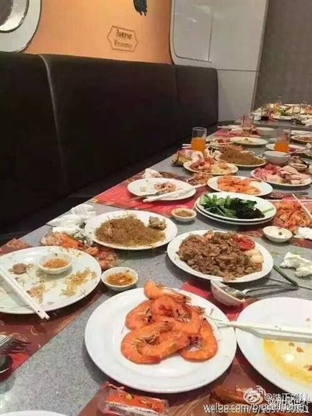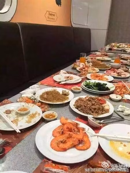 Tuy nhiên, sau đó người ta lại chụp được hình ảnh những đĩa tôm còn thừa đầy trên bàn ăn.