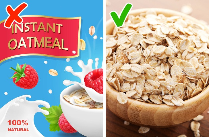 Bột yến mạch là một lựa chọn rất lành mạnh cho bữa sáng, vì yến mạch có nhiều chất xơ, vitamin, protein và không chứa gluten. Tuy nhiên, các gói bột yến mạch ăn liền có nhiều đường, muối và màu nhân tạo. Nếu bạn thực sự không có thời gian để chuẩn bị yến mạch thông thường, chỉ chọn yến mạch đơn giản, không đường, và chú ý đến chất bảo quản và chất xơ của nó.