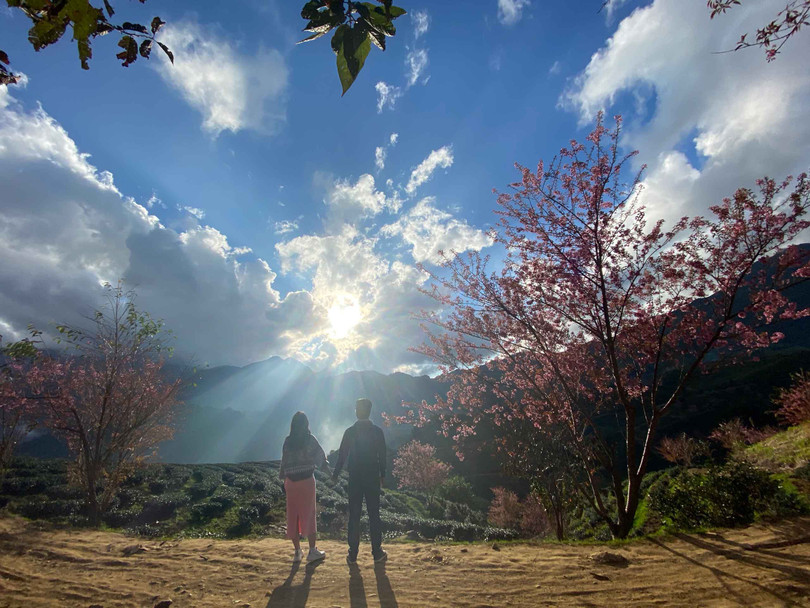 Cộng đồng mạng đang khiến giới dịch chuyển “phát sốt” với những bức hình đồi chè Ô Long ngợp ngời sắc hoa mai anh đào hồng rực. Nằm cách thị xã Sa Pa khoảng 8km về hướng Tây Bắc, đồi chè này đang là địa điểm “sống ảo” số 1 tại Sa Pa.