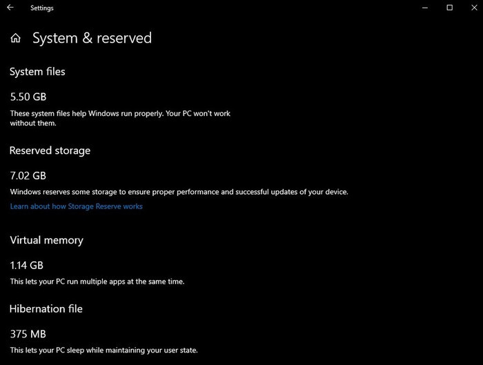 Microsoft đã giới thiệu tính năng “Reserved Storage” trên Windows 10 bản build 1903. Điều này sẽ tiêu tốn dung lượng lưu trữ từ ổ cứng và người dùng không thể xóa khỏi máy tính. Giúp đảm bảo máy tính của bạn luôn nhận được bản nâng cấp mới nhất.