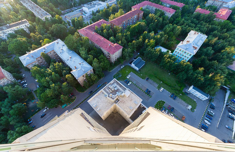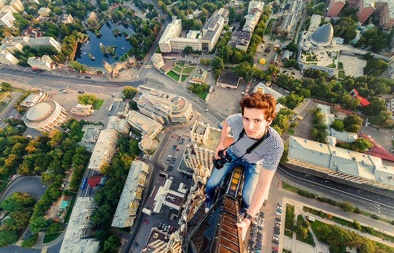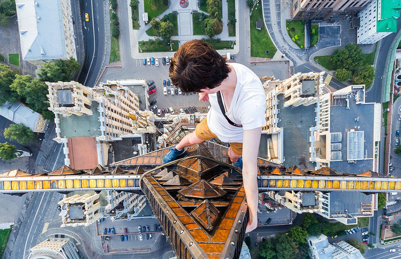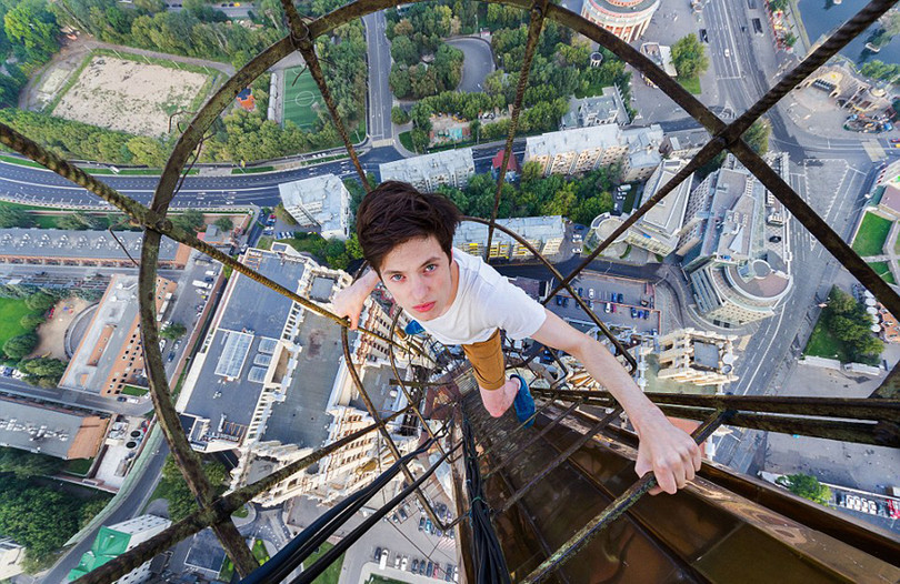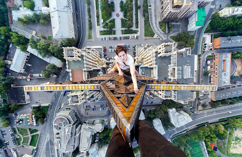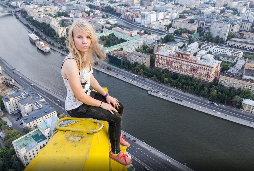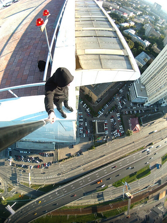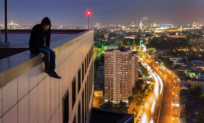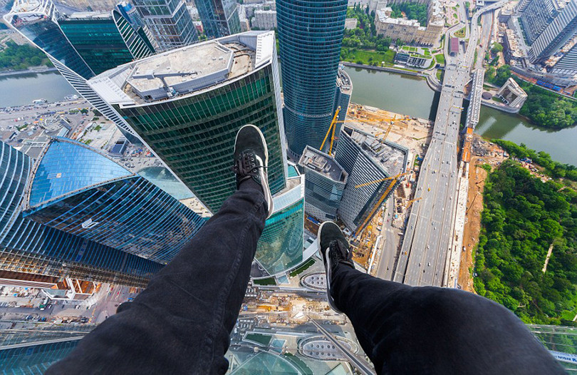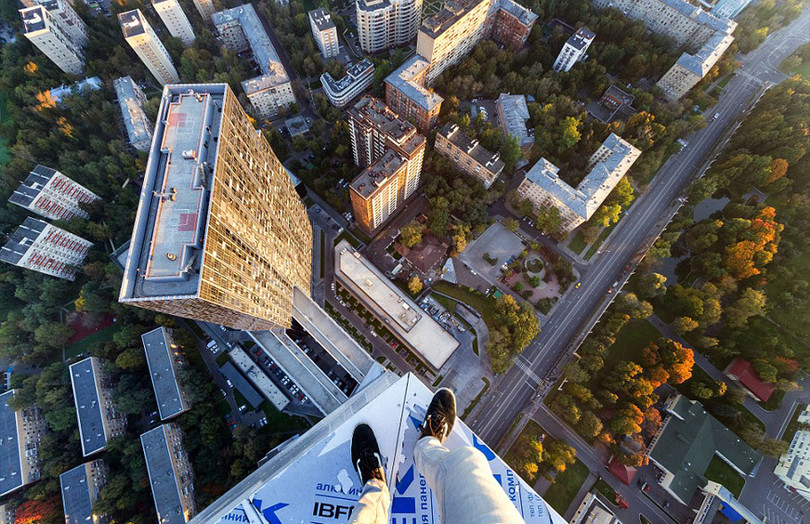 Theo tờ Daily mail của Anh, chàng trai Nga 19 tuổi Alexey Kuzin thích thử thách độ cao đã cùng người bạn yêu nhiếp ảnh Alexander Voskresenksy trèo lên sân thượng của tòa chung cư Kudrinskaya Square Building cao 156m và cho ra đời những bức ảnh đứng tim về toàn cảnh thành phố.