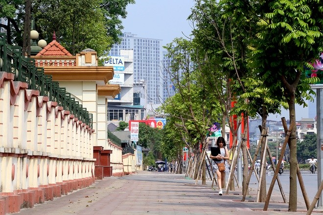 Vỉa hè hai bên đường rộng 6m. Hệ thống cây xanh và điện chiếu sáng cùng các hạng mục hạ tầng khác đã hoàn thiện.