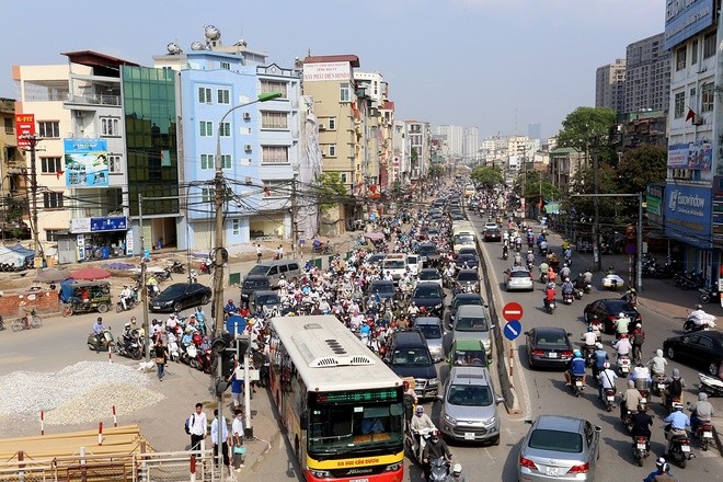 Giờ cao điểm, tuyến đường Trường Chinh, đặc biệt là đoạn giao với cầu vượt Ngã Tư Vọng và đoạn từ phố Vương Thừa Vũ - Tôn Thất Tùng do vướng công trường thi công nên ùn tắc theo cả hai chiều.