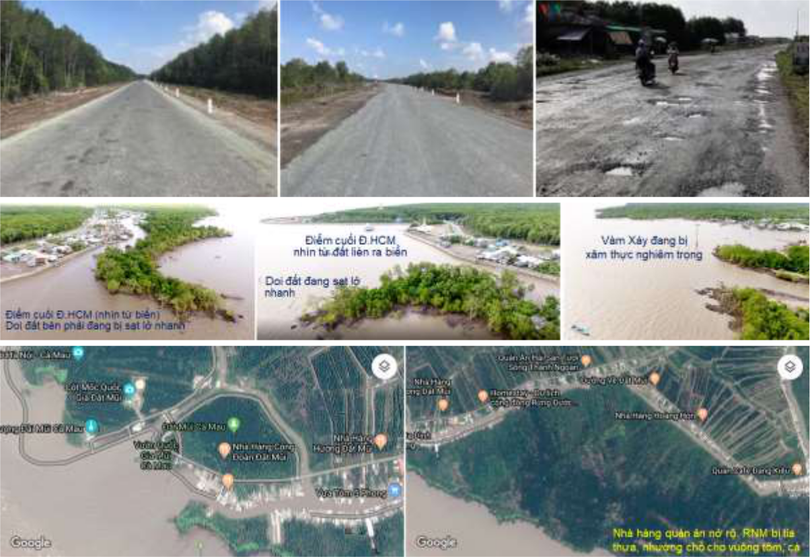 Tuy nhiên, ngoài thách thức đối với cung đoạn (II) đang bị đe dọa nghiêm trọng, những hình ảnh dưới đây dẫn chúng ta đến một câu hỏi cần được giải đáp: sự cùng tồn tại và phát triển hài hòa và bền vững giữa du lịch sinh thái dựa trên đoạn Năm Căn - Đất Mũi đường Hồ Chí Minh và Vườn quốc gia Mũi Cà Mau 6 có khả thi? Và nếu có thì với những điều kiện và biện pháp gì?