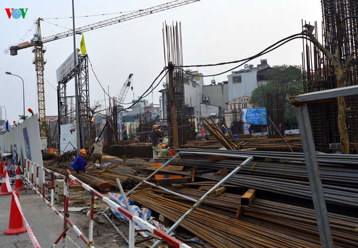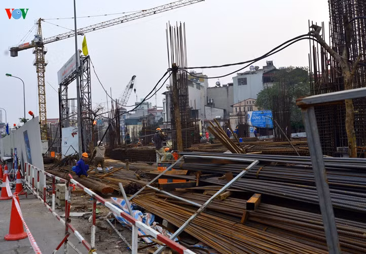 Khu điều hành 9 tầng ở nhà ga Cát Linh mới thi công trụ cột tầng 1