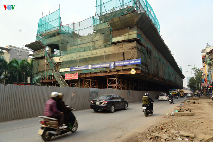 Nhà ga Vành Đai 3 vẫn còn rất sơ sài do thi công trùng với dự án đường hầm chui Thanh Xuân nên gặp nhiều trở ngại.