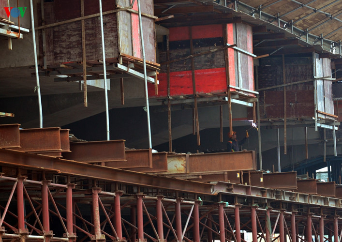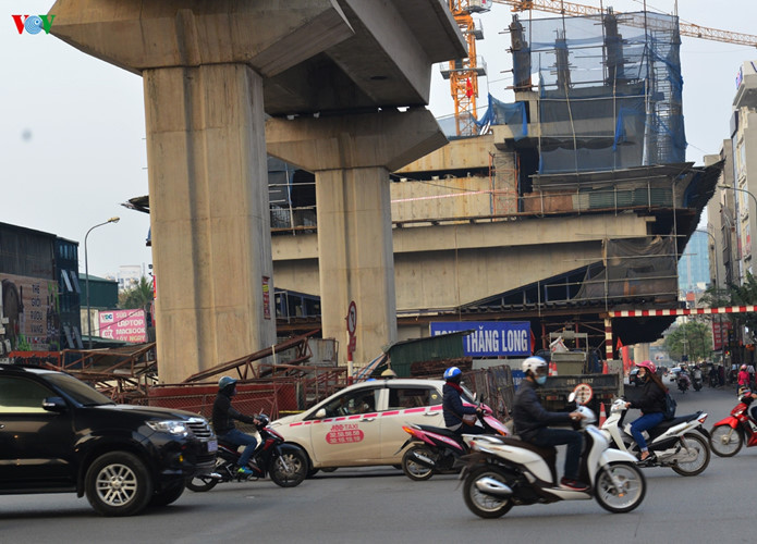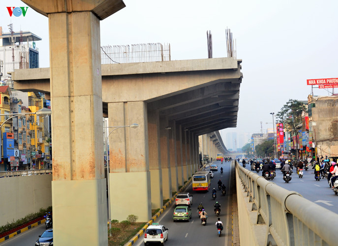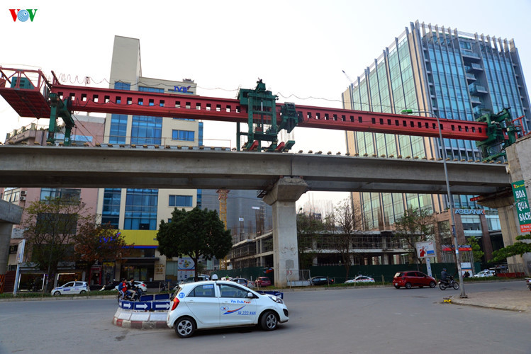 Phần lớn các phiến dầm đã được đặt vào đúng chỗ, ngoại trừ 1 số nơi phức tạp như tại Hồ Hoàng Cầu.