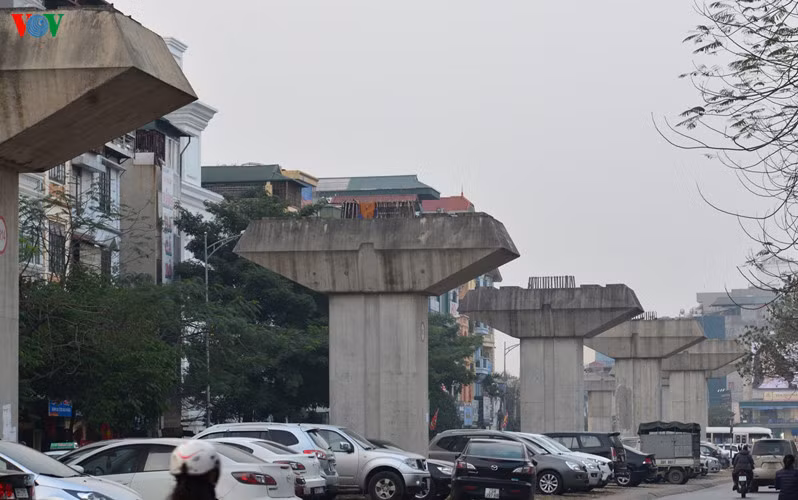 Nhiều đoạn dầm tại Hoàng Cầu chưa được thi công.