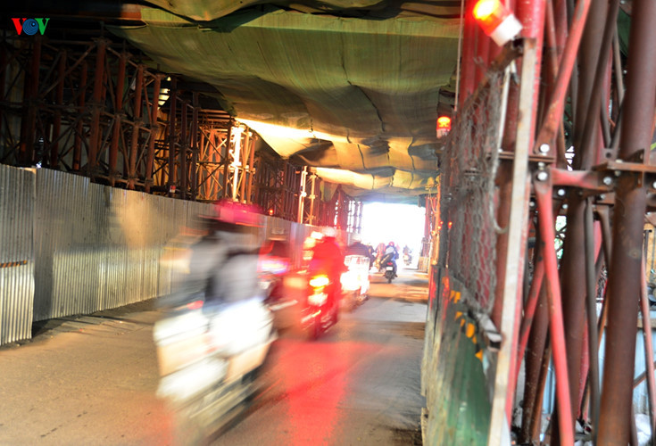 Nhiều năm nay, người dân phải đi chui qua khu vực thi công đoạn đường Hoàng Cầu.