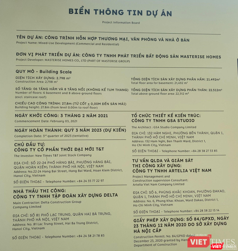 Sau nhiều năm, dự án bất ngờ được khởi công vào ngày 3/2/2021. Biển thông tin dự án cũng được thay đổi, tiết lộ một chi tiết đáng chú ý. Đó là việc Công ty TNHH Phát triển Bất động sản Masterise Homes (Masterise Homes), thành viên của CTCP Tập đoàn Masterise (Masterise Group), đã thay thế Tân Hoàng Minh làm nhà phát triển dự án.