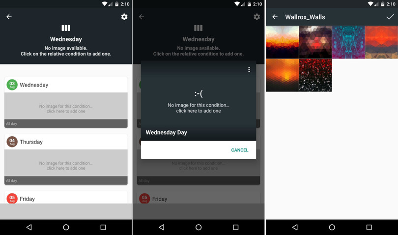 Chỉ sau vài thao tác đơn giản, ứng dụng sẽ tự động đổi hình nền dựa trên nhiều ngữ cảnh khác nhau. Bạn có thể thiết lập để ảnh nền tự thay đổi khi đổi mạng Wi-Fi, hoặc bạn cũng có thể thiết lập để nó động thay đổi theo thời tiết, tháng trong năm và thậm chí ngày trong tuần. Bên cạnh đó, ứng dụng còn có thiết lập thay đổi ảnh nền theo giờ trong ngày. Do vậy nếu thích, bạn có thể đặt một hình nền màu sáng vào ban ngày, và để nó tự động đổi sang hình nền màu tối hơn vào ban đêm.